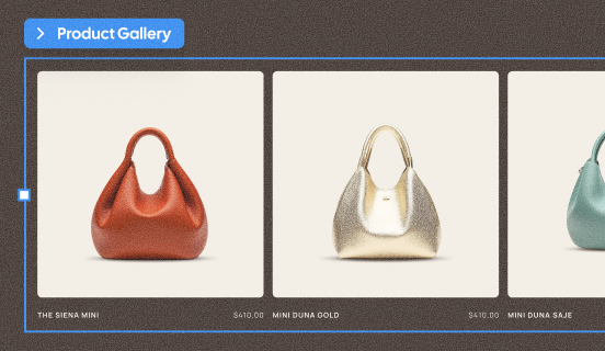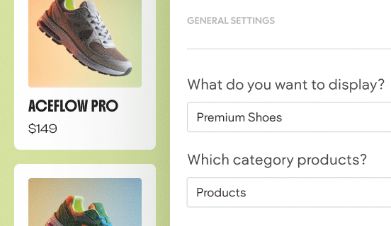 Configure products to display different sizes, colors, or other variations using Product Options and Variants.